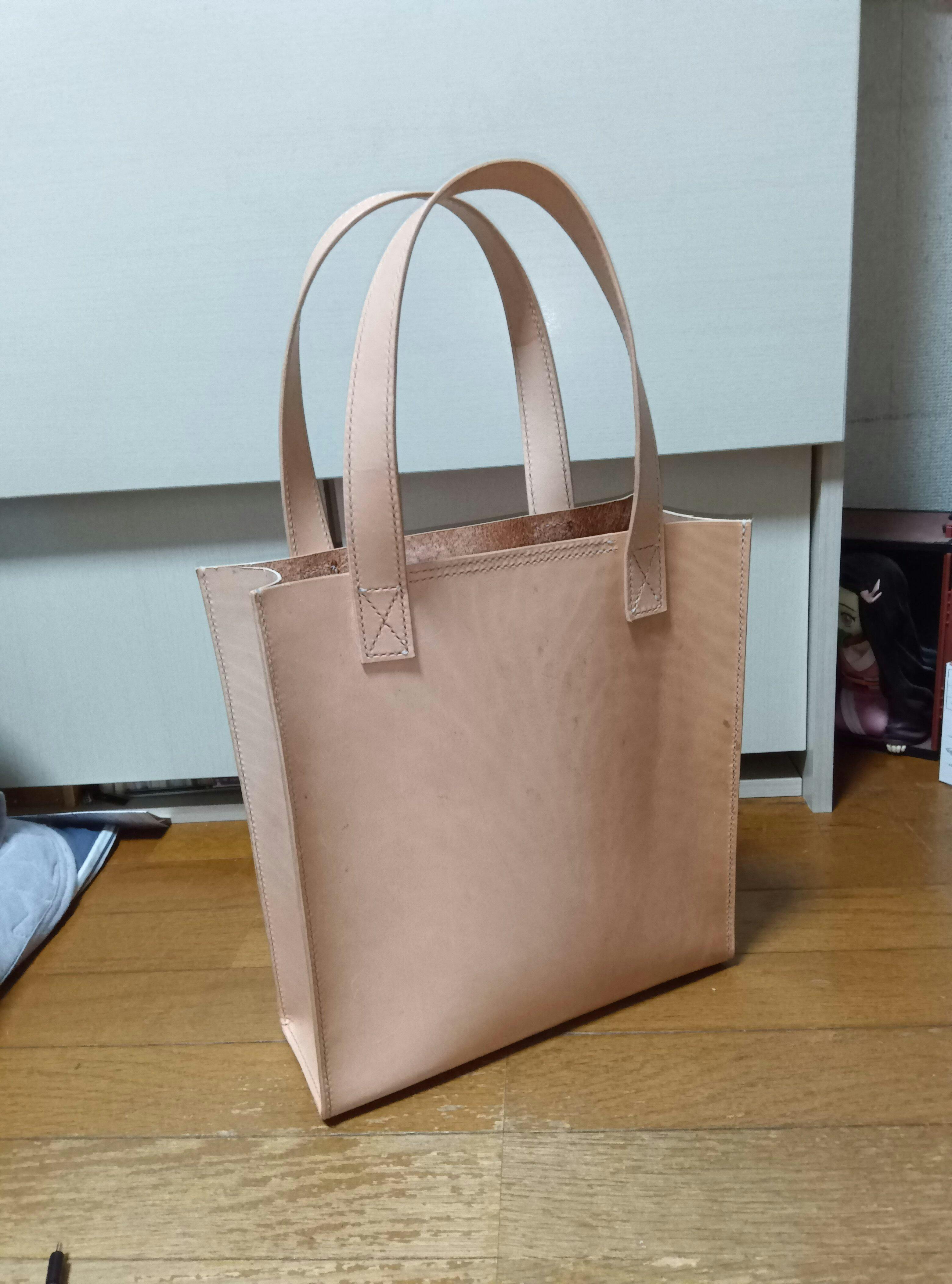 思っていた以上にきれいな革でコシもあり大満足です。普段は財布やペンケースがメインなのですが、せっかくなのでトートバッグ作成してみますね